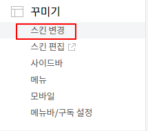 2. 관리 화면 좌측 사이드 화면에 스킨 편집을 클릭