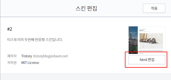 3. 스킨 편집 화면에서 html 편집 클릭