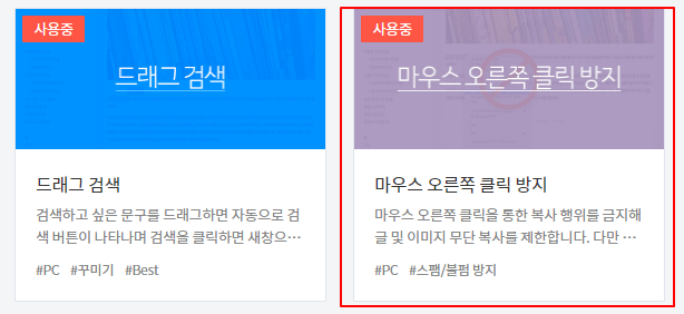 우리는 드래그 복사도 막을 예정이라 드래그 검색 플러그인 사용하는 게 의미는 없을 것이라 판단된다.