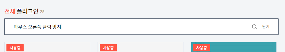3. 마우스 오른쪽 클릭 방지 플러그인을 찾아서 클릭하여 적용