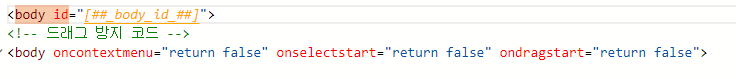 <body id= 를 검색하여 해당 코드 아래쪽에 드래그 방지 코드를 작성하여 넣기