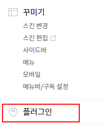 2. 관리 화면 좌측 사이드 화면에 플러그인을 클릭
