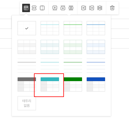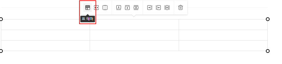 2. 생성된 테이블을 클릭 후 뜨는 메뉴에 "표 테마" 선택하기