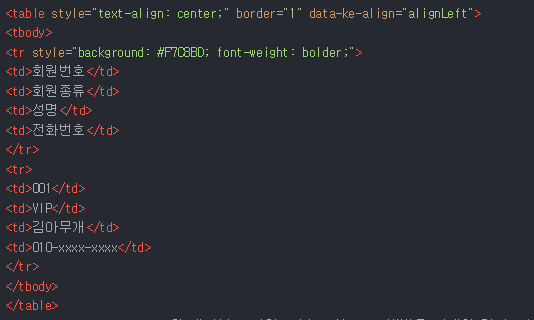 🔹 HTML 코드로 테이블 작성하기