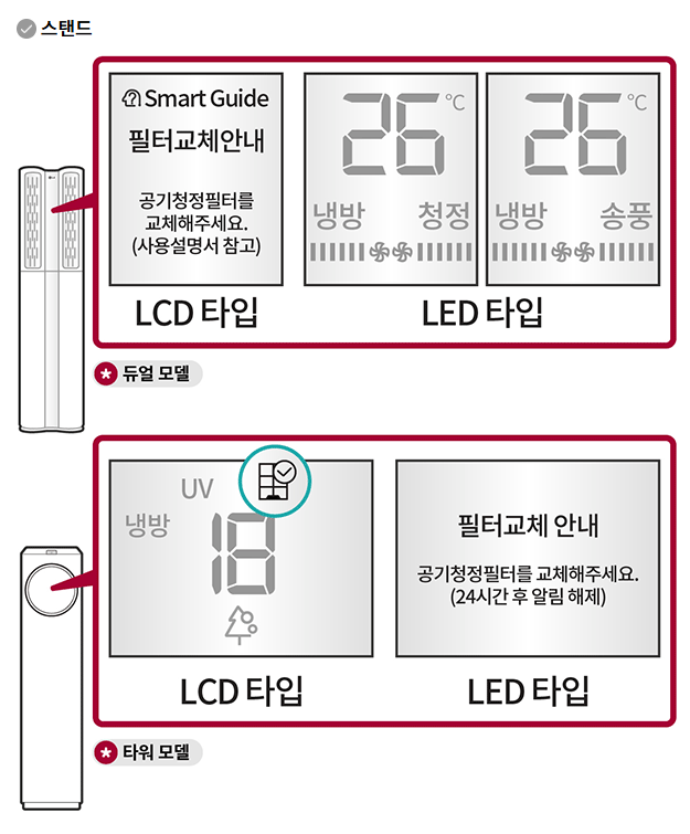 LG 에어컨에는 필터의 오염 상태를 감지하는 기능이 있습니다.