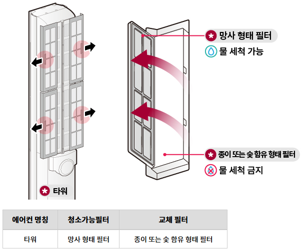 필터는 실내 공기의 먼지와 오염물질을 걸러주는 역할을 합니다.