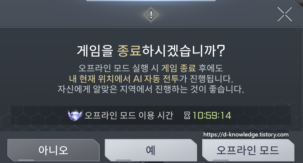 - 특권이 없는 유저: 오후 7시에 오프라인 모드 시작 → 다음날 오전 5시 초기화 후 10시간 추가! (총 20시간 활용 가능)