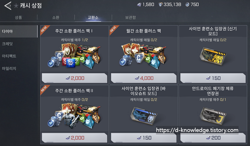 캐시 상점에서는 다이아를 사용해 다양한 상품을 구매할 수 있습니다.