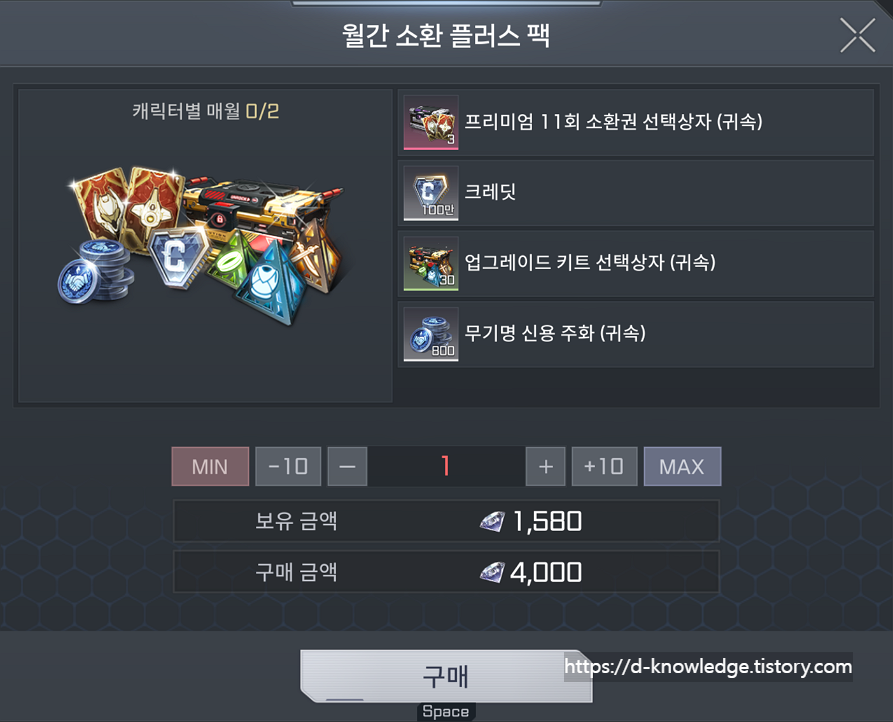 👉 무과금이라면 먼저 주간 소환 플러스팩을 구매하고, 여유가 있으면 월간 소환 플러스팩도 추가 구매하세요!