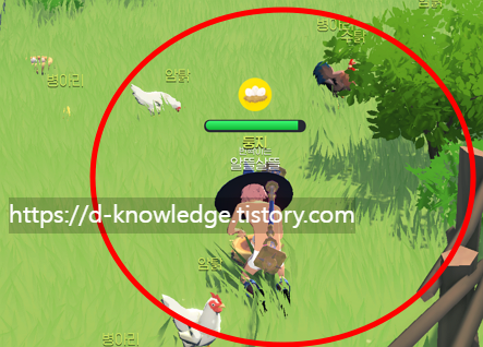 ✅ 반드시 수탉을 바라보며 채집해야 안정적으로 달걀을 수확할 수 있습니다.