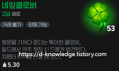 | 숨숨꽃 | 최상급 회복 물약 (60개) 얼음협곡 3구역 약초 구역 → 네잎클로버(치명타 비약 100개) |