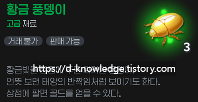 - 일부 희귀 재료는 황금 재료를 이용해 자동 채집이 가능합니다.