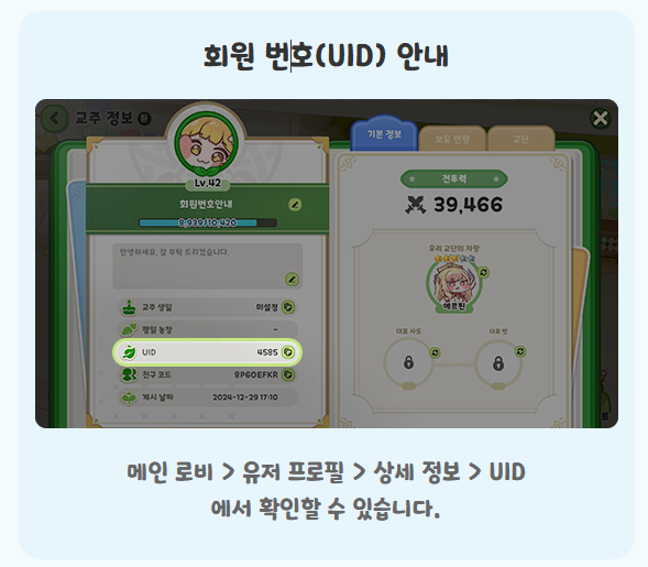 위 경로에서 회원 번호(UID) 를 쉽게 찾을 수 있습니다! 🎮