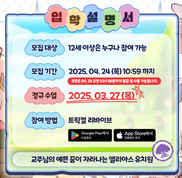 ✔️ 입학설명서 참여 - 지금 게임을 설치하면, 쿠폰을 발급 받을 수 있습니다.