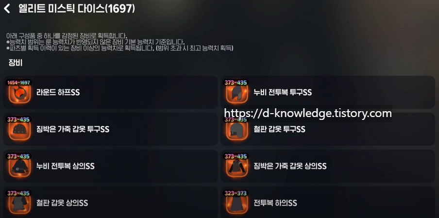 엘리트 미스틱 다이스를 사용하면 무작위로 강력한 장비를 얻을 수 있습니다.