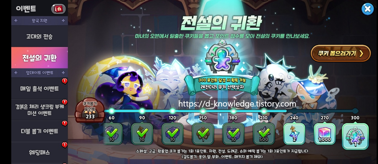 - 300뽑을 하면 레전드 쿠키 선택 상자 지급