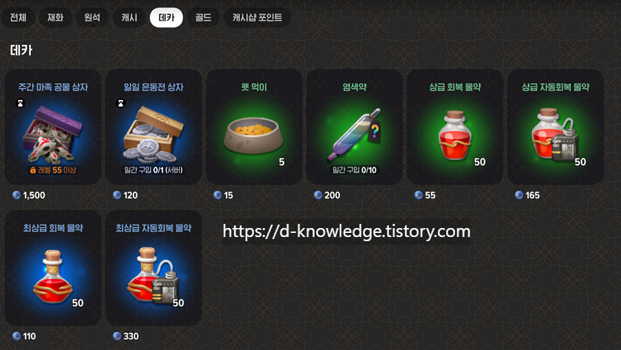 캐시샵에서는 다양한 보상과 성장 아이템을 받을 수 있어.