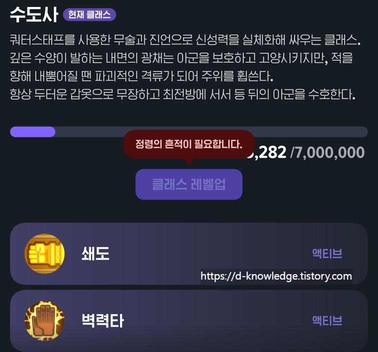 📌 TIP: 정령의 흔적이 많다면 다른 클래스를 미리 레벨업해두는 것이 좋습니다.