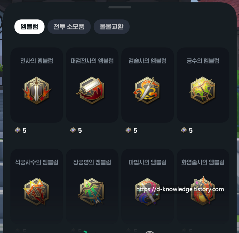 ✔️ 엠블럼을 구매하기 전, 해당 직업의 무기를 구해 체험해보는 것이 좋음