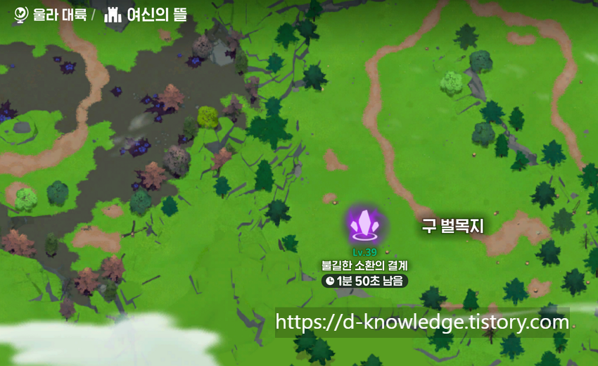 A. 불길한 소환의 결계는 여신의 뜰에서 랜덤한 위치로 생성되므로, 맵을 잘 확인하고 빠르게 이동하는 것이 중요하다.