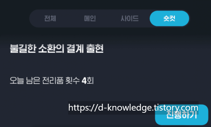 많은 분들이 ‘불길한 소환의 결계’ 보상을 몇 번 남았는지 확인하는 방법을 모르고 계신 경우가 있습니다.