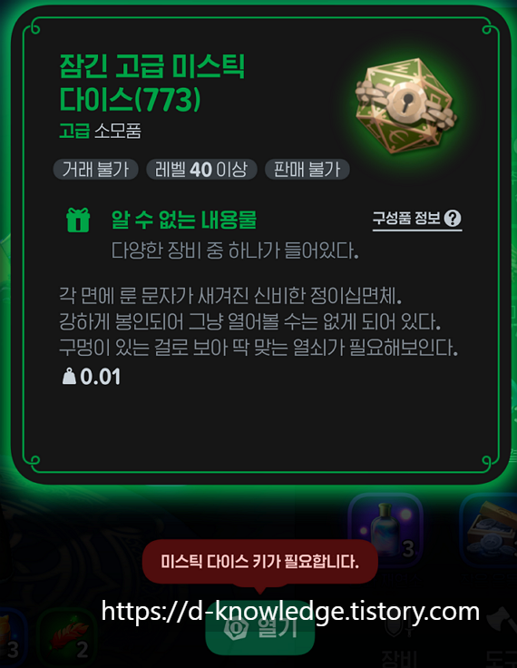 ✔️ 미스틱 다이스를 열려면 다이스키가 필수!