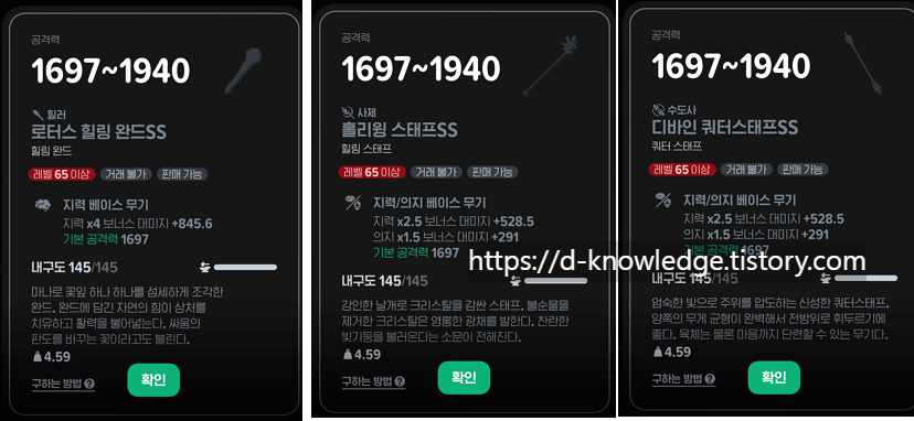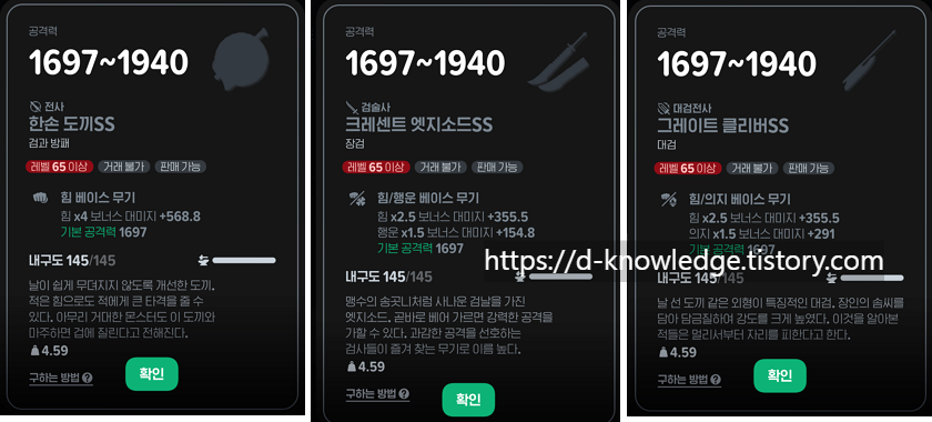 무기의 기본 능력치만 보고 장비를 선택할 수도 있지만, 각 클래스별 스킬의 대미지 판정 유형을 고려하는 것도 중요합니다.