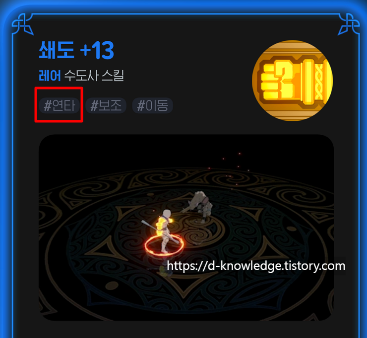 | 🔄 연타 | 짧은 시간 내 여러 번 공격 시 연타 판정 | 솜씨, 연타 강화 능력치 증가 |