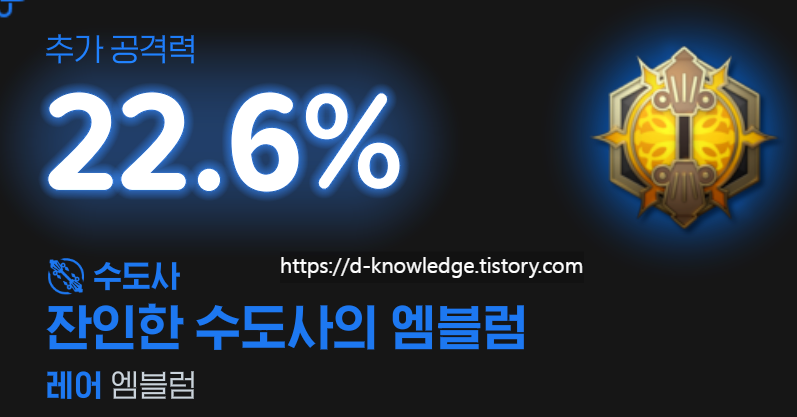 - 엠블럼의 옵션이 뛰어나므로 필수적으로 착용하는 것이 좋습니다.
