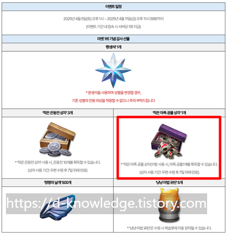 - 2025년 4월 5일(토) 오후 1시 ~ 2025년 4월 11일(금) 오후 11시 59분까지