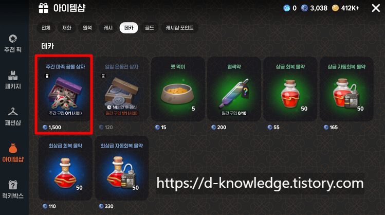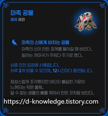 - 마족 공물 : 심층 던전 입장에 필요한 전용 아이템