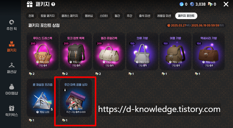 - 경로 : 캐시샵 > 패키지 > 패키지 포인트 탭