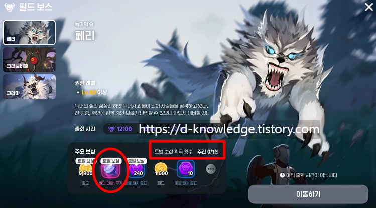 토벌 보상 획득 횟수로 제한 되며, 주 1회 가능 합니다.