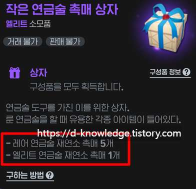 | 작은 연금술 촉매 상자 | 1개 | 260개 | 1회 |