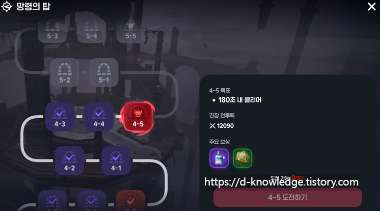 🌀 망령의 탑은 총 50층으로 이루어져 있으며, 5층마다 보스 층이 존재합니다.