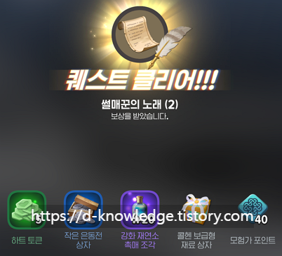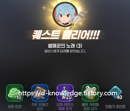 보상은 크지 않지만, 스토리나 분위기를 즐기고 싶은 분들께 추천드려요!