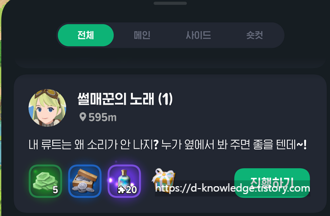 🔸 진행 순서 중요: 순차적으로 완료하지 않으면 퀘스트 위치 확인 불가
