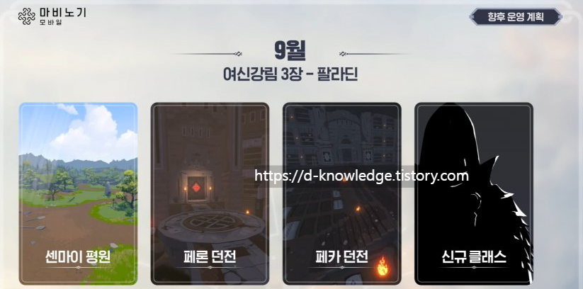| 9월 | 여신강림 3장, 팔라딘 변신, 신규 던전 2종, 신규 클래스 |