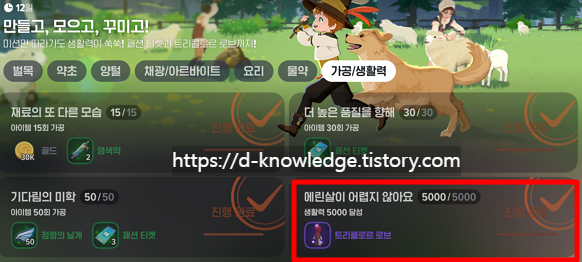 이벤트 조건: 생활력 5000 달성 시 → 엘리트 로브(트리콜로르 로브) 획득 가능