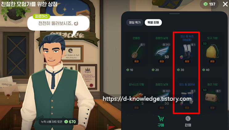 - 하트 토큰: 마을 상점에서 패션 장비 구매