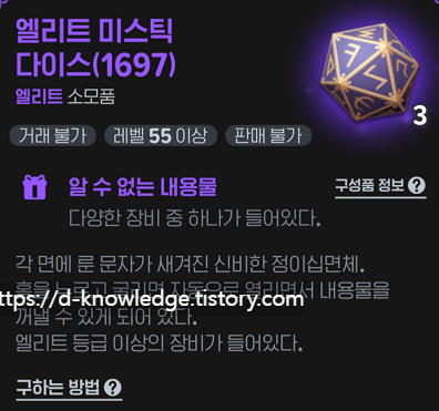 바로 마지막 구매 아이템으로 ‘엘리트 미스틱 다이스(1697)’를 구매할 수 있기 때문입니다.