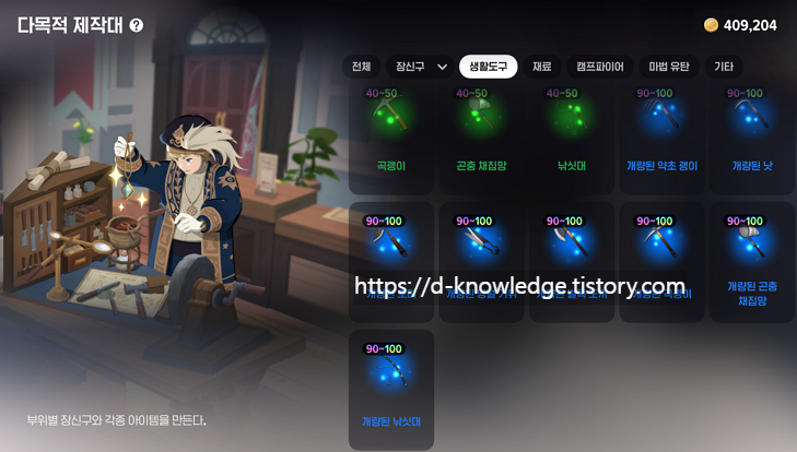 - 💰 개량된 도구 부품은 잡화점에서 골드로 구매할 수 있습니다.