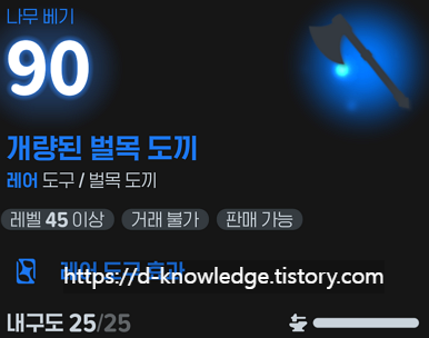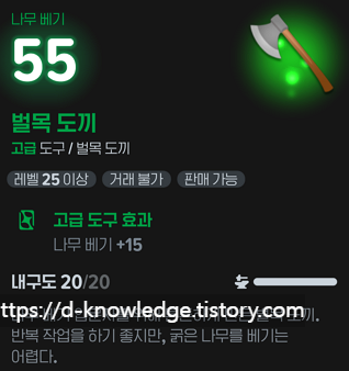 예를 들어, 고급 벌목 도끼는 단순히 나무 베기 속도 +15 효과만 있습니다.
