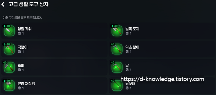 🟢 고급 채집 도구는 판타지 라이프 챌린지 - 생활 1단계를 완료하면 획득할 수 있습니다.