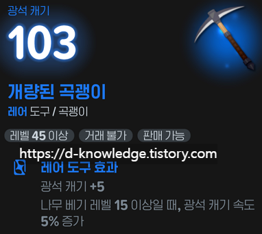 - 광석 캐기 레벨 15 이상일 때, 호미질 속도 5% 증가
