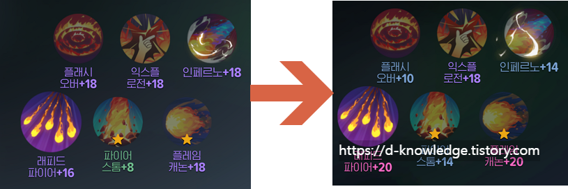 - 기본 조합: 불씨(1번), 불기둥(2번), 잿더미(5번)