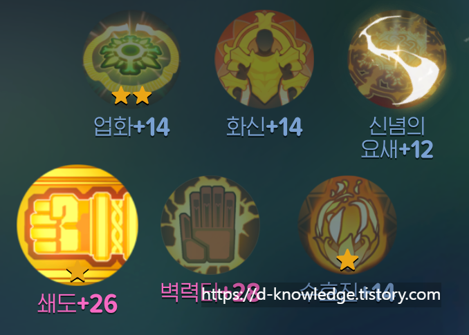 - ✨ 응보 : 벽력타를 강화해, 진언 3종(힘/빛/정화) 활성 시 10초간 벽력장 1회 사용 가능