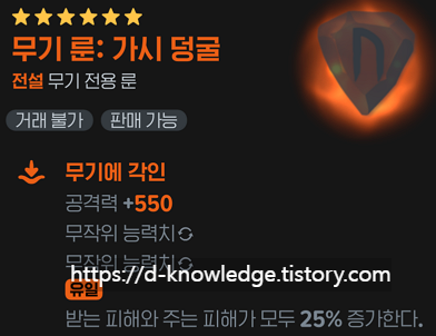 - 가시 덩굴 : 주고 받는 피해 모두 25% 증가 (위험하지만 극딜용)