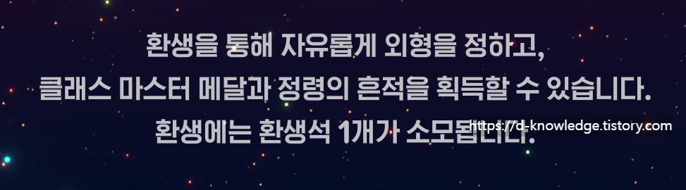 | 환생 시 효과 | 레벨 초기화 + 스탯 재분배 | 외형 초기화 |