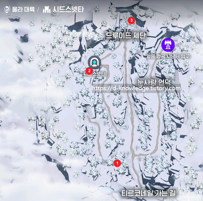 🌨 이곳은 설원 지역으로, 눈에 덮여 있는 둥지를 찾아야 합니다.